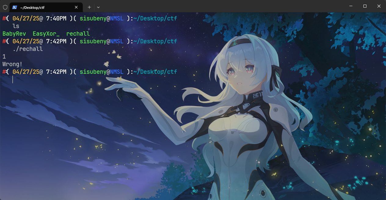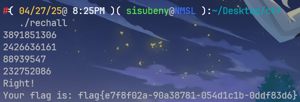 题目给出一个二进制文件 rechall,要求输入正确的 flag 通过验证。