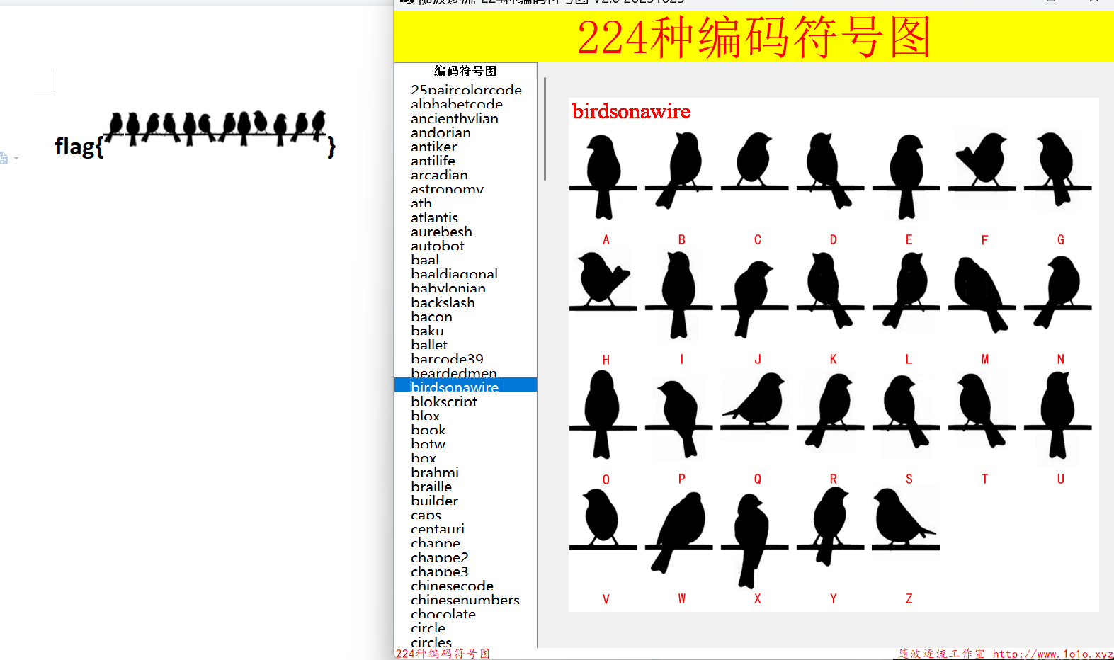 这串鸟的图片应该就是密码。通过网络搜索或随波逐流可以找到密码来源 birdsonawire。